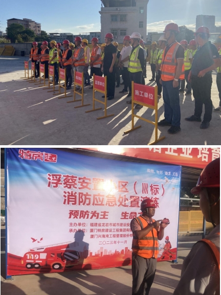 11月9日是第32個全國消防日,為全面普及消防安全知識,進一步提高在建項目管理人員及現(xiàn)場工人的消防安全自防自救的處置能力,預防和減少火災事故的發(fā)生,當天,市政集團以“11·9”消防宣傳日為契機,深入浮蔡安置小區(qū)Ⅲ標項目開展11·9”消防安全宣傳日活動,圍繞主題開展了消防應(yīng)急處置演練活動,公司副總經(jīng)理修海金、質(zhì)安部及施工、監(jiān)理單位共計五十余人參加活動。