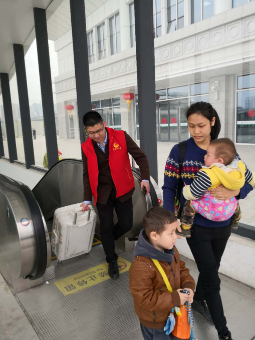 在火車站服務(wù)最需要幫助的有三種人:一種是殘疾人,一種是老年人,另外一種就是一手抱著小孩、一手提著行李的旅客。因新建火車站剛剛啟用,“請問進(jìn)站口在哪兒?當(dāng)一位拿著大包小包還帶著孩子的旅客問到。“在這邊,我來幫你?!?/span>志愿者一邊指著路一邊接過旅客手中的包,一路將她送至進(jìn)站口。