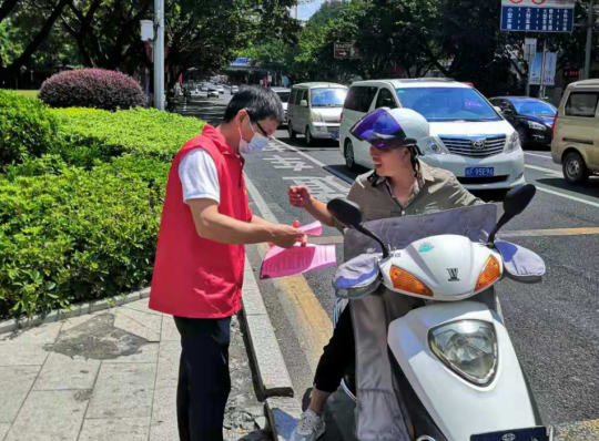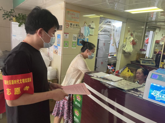 八月末,天氣炎熱,市政集團(tuán)的志愿者們身著紅馬甲,不畏臟、不怕累,各司其職,分時段分批次在蓮新社區(qū)范圍內(nèi)開展創(chuàng)城活動,其中清潔崗的志愿者們帶著夾子、掃帚、垃圾袋等清掃工具,對街道路面的紙屑、塑料袋、煙頭等生活垃圾進(jìn)行清掃,將亂停亂放的自行車整齊的排列在停車位上,使得街道整潔一新。宣傳崗的志愿者們走進(jìn)商鋪,發(fā)放文明宣傳標(biāo)語,動員商鋪店主一起,注意門前三包,在平時營業(yè)工作中,遇到不文明行為時,進(jìn)行及時規(guī)勸,讓市民自覺遵守,規(guī)范自身行為,積極踐行“共創(chuàng)共享”的創(chuàng)城理念,共同為創(chuàng)建文明城市出一份力。交通崗的志愿者們通過積極引導(dǎo)道路交通,向過往行人科普創(chuàng)城溫馨小知識,加強(qiáng)城市文明建設(shè)。
